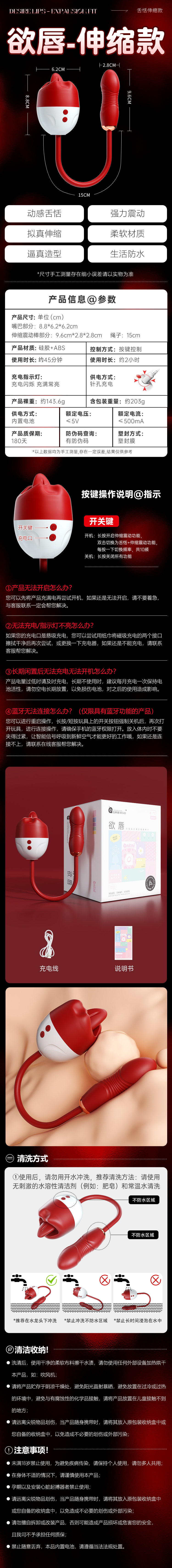 欲唇伸缩款强震伸缩仿真舌舔女用自慰器高潮神器成人情趣用品 伸缩款 1个/盒