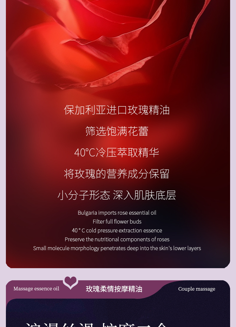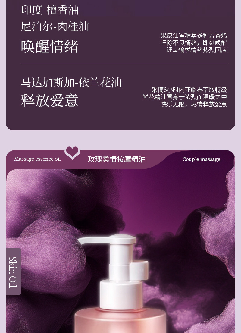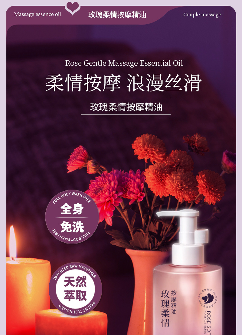[SPA]玫瑰按摩精油500ML/瓶 情侣夫妻调情夫妻调情私处全身体开背推油情趣女润滑免洗