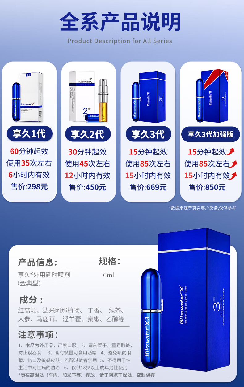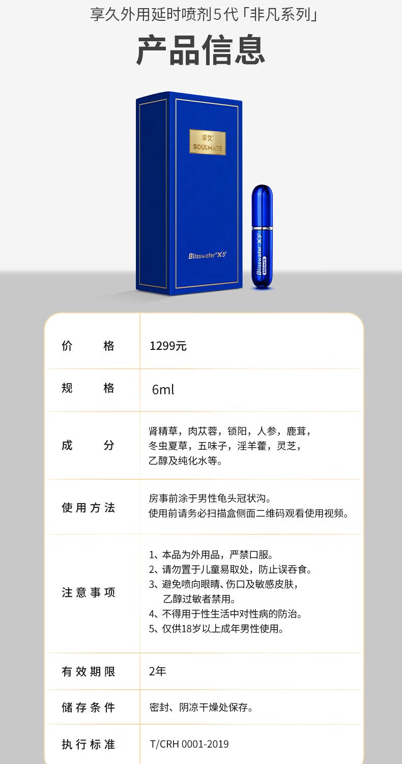 享久5代小蓝瓶男士延时喷雾第五代新款 享久男用外用延时喷剂6ml/支/盒