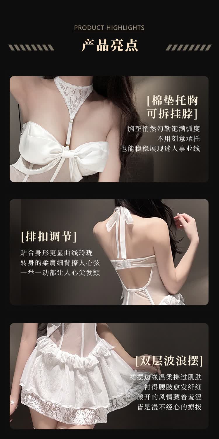 [霏慕]甜蜜花嫁开裆鱼骨马甲裙新娘均码性感睡衣可爱床上qqny女生内衣服ZY203不含袜子