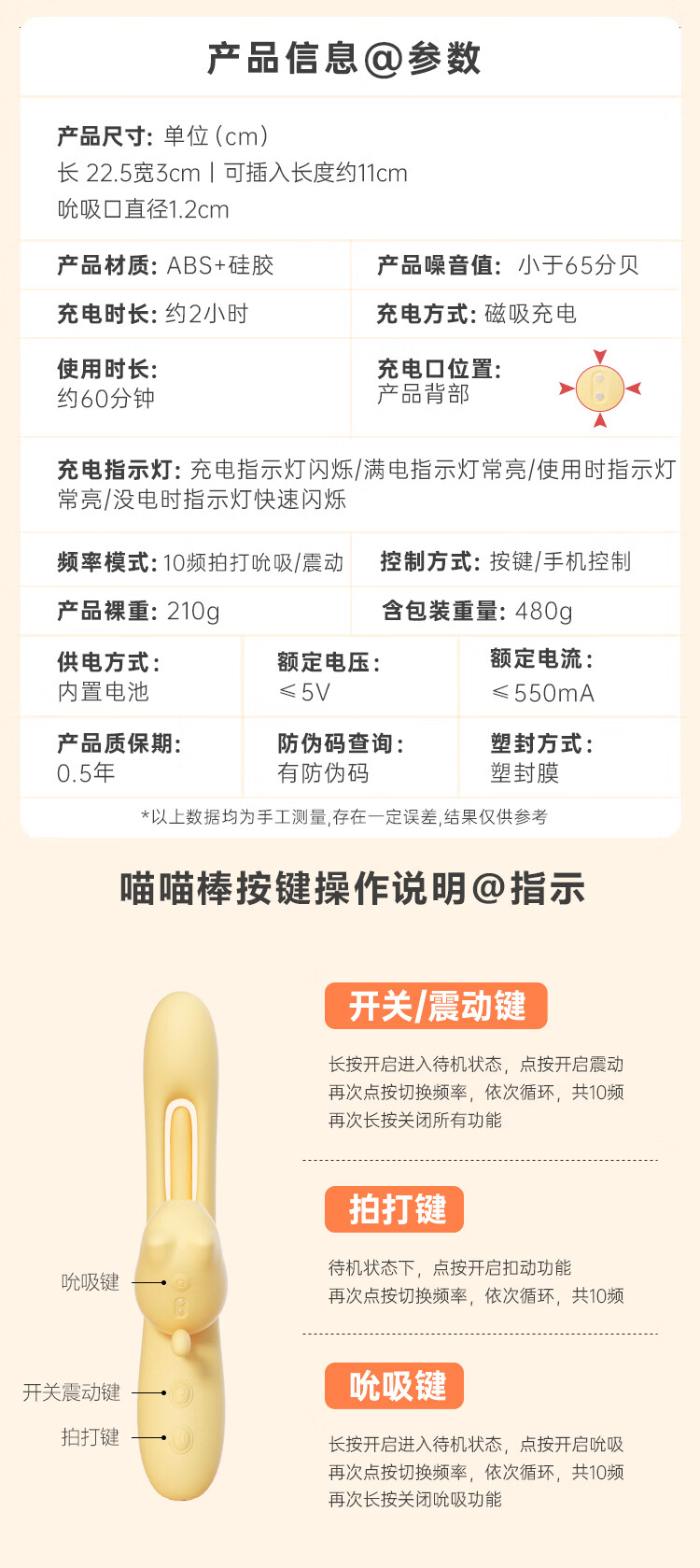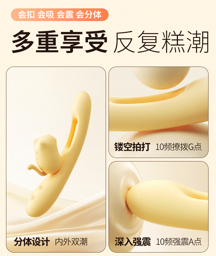 [安可尼]喵喵入体震动棒按键式分体式女生情趣震动棒可爱吮吸用按摩棒女生用情趣用品床头玩具
